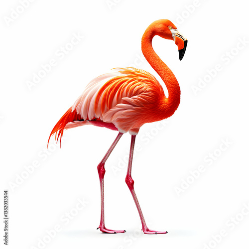 Elegant flamingo portrait showcasing vibrant plumage against white backdrop