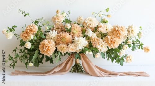 flower, arrangement, peach, soft, elegant, dahlia, greenery, bouquet, design, decoration, nature, floral, wedding, event, table, celebration, beauty, fresh, seasonal, rose, flower petals, artistic, romantic, background, organic, charming, minimalistic, aesthetic, vibrant, delightful, unique, artistry, luxury, calmness, craft, blooming, style, spring, summer, display, hospitality, bright, environment, harmony, texture, artful