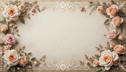 rose, blooming, lace, floral, beige, frame, border, blossom, ornate, arrangement, decoration, decorative, design, element, vintage, background, template, wedding, invitation, greeting, card, announcement, event, celebration, stationery, scrapbook, clip art, graphic, romantic, feminine, soft, pastel, neutral, detailed, artistic, copy space, artwork