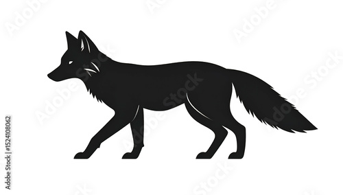 Elegant fox silhouette in bold black, high-resolution icon on white and clear transparent background