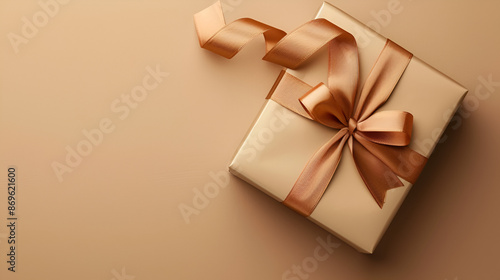 Elegant Gift Box with Ribbon on Luxury Plain Background