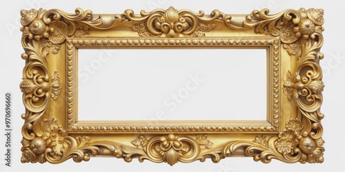 Elegant gold picture frame with intricate detailing , luxury, shiny, metallic, ornate, antique, vintage, elegant, decor