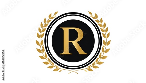 Elegant Golden Letter R Logo with Laurel Wreath Design.