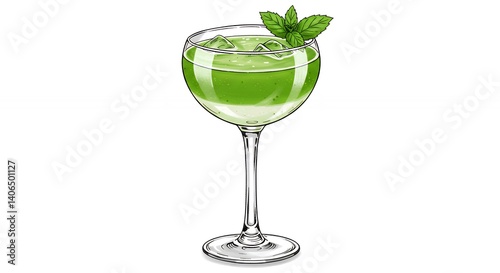 cocktail, mint, drink, beverage, green, alcoholic, cocktail glass, ice, bar, eatery, summer, fresh, image, illustration, food photography, design, visual, creative, composition, modern, graphic, marketing, advertising, promotional, digital artwork, photo, high-quality, smooth, delicious, tasty