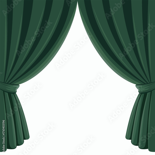 curtain, green, drape, fabric, interior, design, decor, elegance, sophistication, window, frame, white, blank, space, template, background, home, textile, vector, graphic, tied, drawn, open, presentation, advertisement, illustration, decoration, isolated