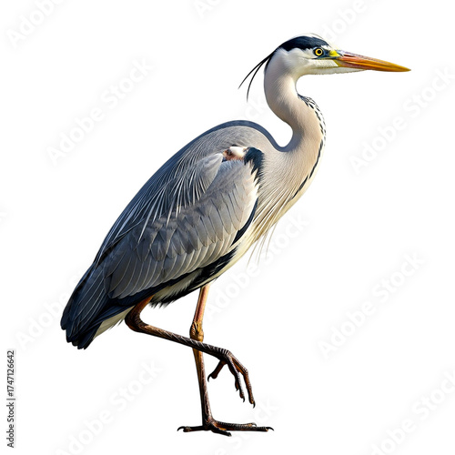 Elegant Grey Heron Portrait Majestic Bird Wildlife Photography Nature Detail Animal Focus on transparent background