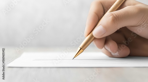 Elegant Hand Writing with Golden Pen on Paper