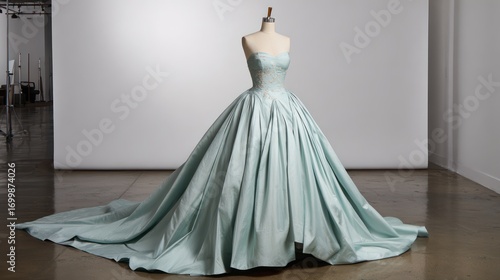 dress, gown, light green, pleated, strapless, bodice, fabric, texture, fashion, style, model, woman, studio, light, photo, colours, image, design, elegant, formal, clothing, dress form, silk, satin, luxury, apparel, bridal gown, event, party, occasion, professional, advertising, haute couture, detail, copy space, isolated, photo, fashion industry