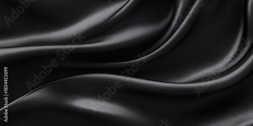 Elegant Luxurious Silk Drapery with Smooth Black Cloth Texture and Rich Waves for Fashion Background