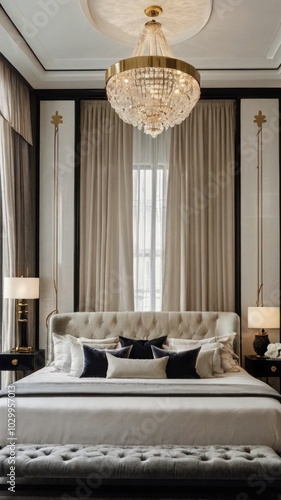 Elegant Luxury Bedroom with Crystal Chandelier