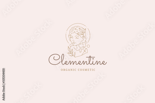 woman, bust, leaf, line, logotype, logotype, minimalist, identity, brand, emblem, art, pictogram, business, advertisement, contour, outline, business card, line art, linear, monochrome, gorgeous, vector, illustration, label, romantic, female, curly, antique, ancient, aphrodite, tropical, mythology, historical building, elegant, statue, sculpture, hair, goddess, beauty, tree branch, fashion, mediaeval, cosmetic, glamour, salon, make-up, skincare