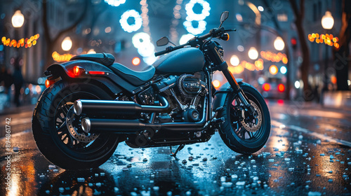 Elegant motorcycle parked on moody city street night