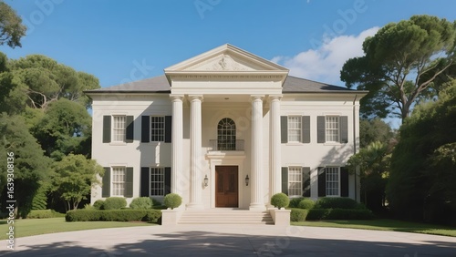 Elegant Neoclassical Mansion with Pillars and Symmetrical Design