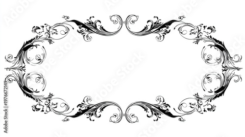 Elegant ornamental frame with symmetrical swirls in classic design
