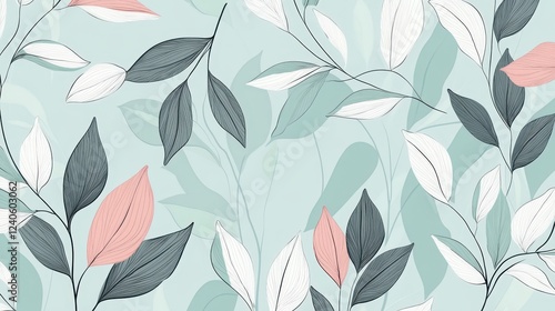 Elegant Pastel Leaves Botanical Pattern Design