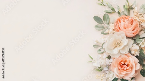 flower, floral, arrangement, bouquet, peach, white, blossom, bloom, rose, ranunculus, magnolia, botanical, spring, summer, wedding, celebration, romantic, delicate, elegant, beautiful, pretty, soft, pastel, light, gentle, feminine, nature, flora, plant, design, decor, image, background, texture, photo, style, art, aesthetic