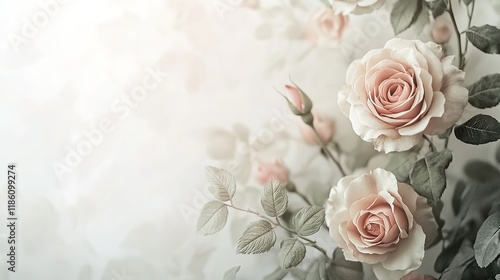 Elegant Pink Roses with soft green leaves and Vintage Floral Background