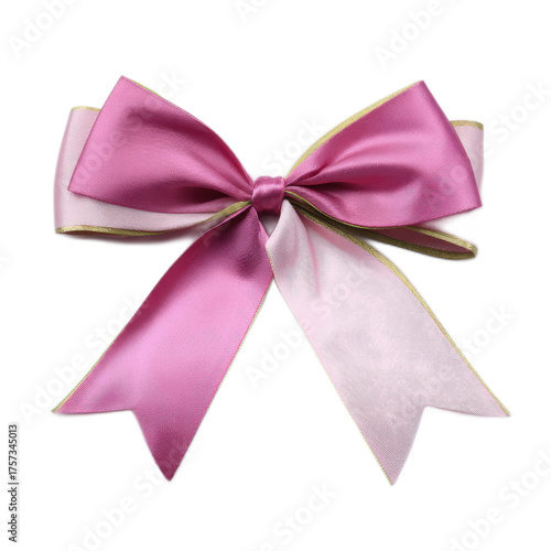 Elegant Pink Satin Bow with Smooth Texture and Lush Ribbons on White Background for Decorative and Gift Purposes