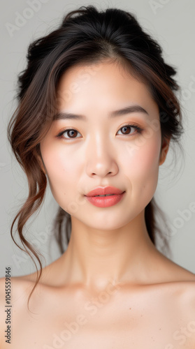 Elegant Portrait of Asian Female Model on Neutral Background for Beauty and Skincare Campaigns