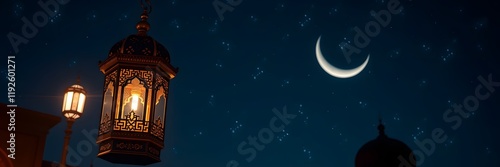 elegant, ramadan, lantern, crescent, moon, starry, night, sky, islamic, decoration, traditional, light, glow, festive, spiritual, celebration, holiday, culture, midnight, holy, festival, design, star, bright, reflective, evening, lantern, eid, magical, mystical, crescent moon, beautiful, spirituality, serenity, calm, tranquil, peace, sacred, divine, festivity, illuminated, ornate, night time