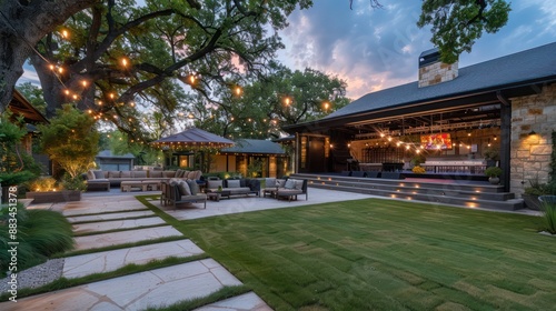 elegant, ranch, backyard, designed, entertaining, stage, live, performance, ample, seating, festive, lighting, architectural, architecture, beautiful, building, construction, contemporary, dark, driveway, estate, expensive, exterior, garage, grass, home, house, housing, large, luxurious, luxury, modern, residence, wall, window