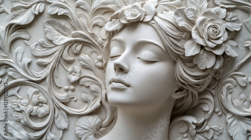sculpture, relief, woman, floral, decoration, art, white, face, beauty, flower, design, craftsmanship, portrait, elegance, detail, expression, nature, aesthetic, artistic, serene, feminine, pattern, texture, home decor, creativity, classic, vintage, intricate, style, romantic, garden, ornamental, girl, calmness, goddess, soft, calm, visual arts, handcraft, luxury, stunning, inspirational