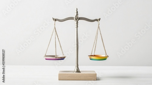Elegant scales subtly balance vibrant rainbow and purple hues against a bright white background. AI Generated