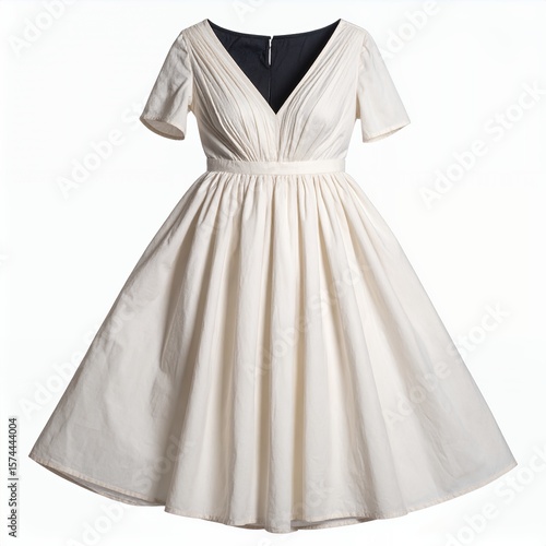 dress, white, elegant, fashion, clothing, style, garment, attire, fabric, design, sewing, textile, vintage, classic, female, silhouette, summer, seasonal, minimalist, simplicity, pristine, spotless, immaculate, uncluttered, empty, clear, bright, clean, plain, surface, isolated, object, nobody, presentation, showcase, product, display, studio, photogenic, ivory