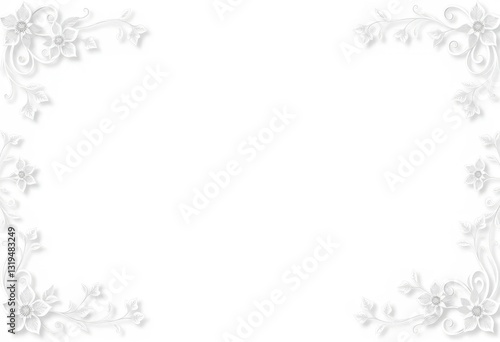 Elegant silver and white floral wedding border, delicate design, ornate, art