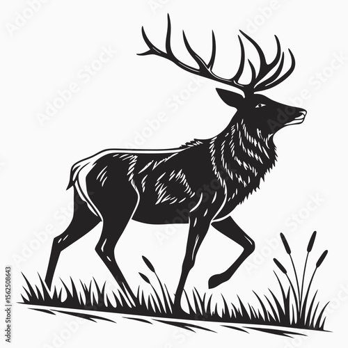 Elegant Stag Silhouette Walking Through Grass a Wildlife Illustration