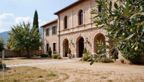 Elegant Stone House Surrounded by Nature and Greenery in a Sunny Rural Landscape