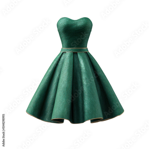 Elegant strapless green dress with a flared skirt and intricate texture detail for fashion and clothing display Transparent background or png