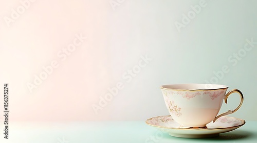 Elegant Teacup and Saucer Pink Floral Design Pastel Background