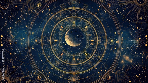 Elegant vector background with celestial patterns and detailed zodiac icons