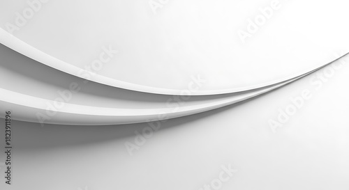 Elegant White Abstract Wavy Background with Smooth Flowing Curves and Subtle Shadows; Minimalist 3D Graphic Design Element for Modern Concepts