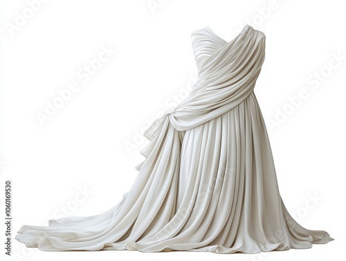 Elegant white dress with flowing fabric, perfect for weddings and formal events, showcasing timeless beauty and grace.