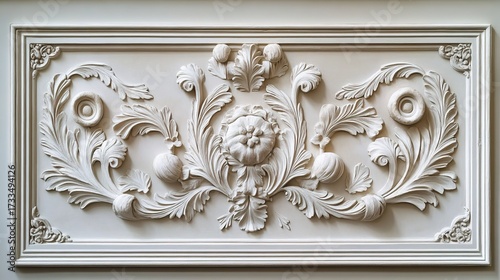 carving, in plaster, relief, floral, design, molding, architecture, frame, white, elegant, intricate, classic, ornate, decor, home, interior, art, texture, pattern, vintage, antique, decorative, detail, scroll, acanthus, leaf, flower, symmetric, artistic, craft, historical, building, rococo, baroque, style, aesthetic, embellishment, motif, ornament, decoration