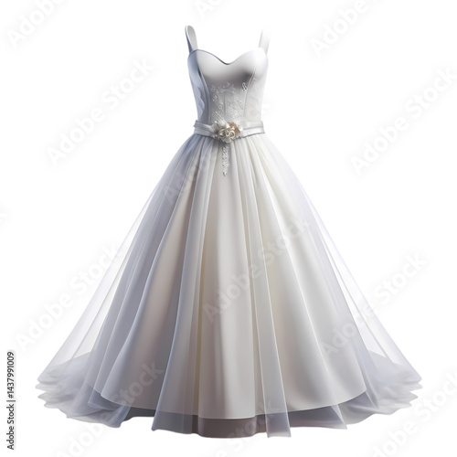 Elegant White Wedding Dress Bridal Gown Ball Gown ALine Silhouette isolated on transparent background