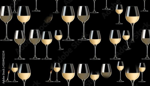 Elegant white wine glasses seamlessly repeated on a black background , background image, simple