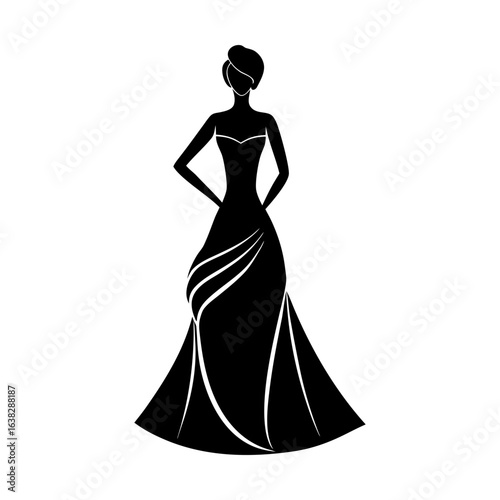 woman, gown, silhouette, fashion, model, style, vector, art, dress, elegant, lady, female, beauty, design, illustration, clothing, figure, pose, artwork, graphic, drawing, shape, contour, outline, image, clip art, icon, symbol, signs, avatar, person, portrait, wedding, bride, ceremony, event, celebration, party, glamour, chic
