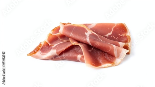 Elegantly Arranged Prosciutto Slices Isolated on a Clean White Background