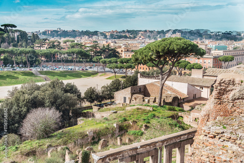 Elevated View of the Rome City from Roman Forum>Italy, 2017.
