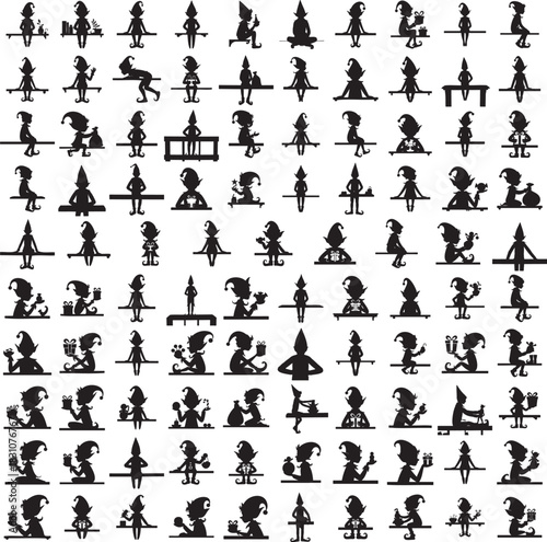 Elf holding toy silhouette set in festive holiday poses