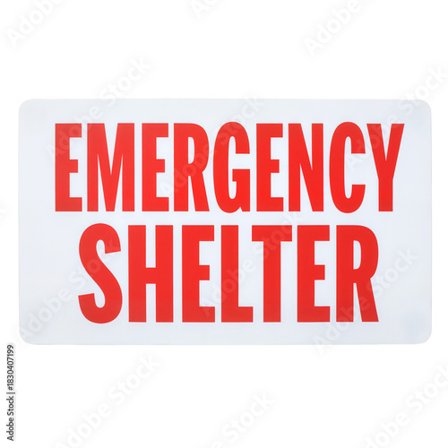 Emergency shelter sign on white background with red lettering