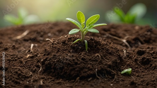 Emerging sprout in fertile soil, symbolizing growth and potential. Ideal for themes of nature, gardening, and new beginnings.