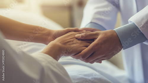 Empathy, trust and nurse holding hands with patient for help, consulting support and healthcare advice. Kindness, counseling and medical therapy in nursing home for hope, consultation and psychology