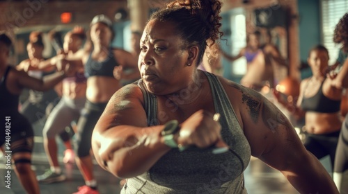 fitness, class, urban, gym, black, woman, strength, positivity, empowerment, diverse, participant, physical exercise, energy, health, community, exercise, movement, instructor, group, athletic, body, motivation, physical, training, perspiring, resilience, encouragement, lifestyle, camaraderie, engagement, challenge, oneness, well-being, dynamic, fun, activity, enthusiasm, rythm, wellness, spirit, determination, enjoyment, coaching, teamwork, journey, background