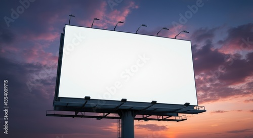 Empty billboard against a colorful sunset sky, perfect for advertising space
