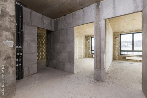 concrete, empty, room, interior, floor, indoor, home, space, new, white, inside, dirty, ceiling, apartment, grey, horizontal, perspective, renovation, rough, window, copy space, grey, industrial, blank, urban, commercial, corridor, damage, door, entrance, estate, garage, grimy, hall, housing, improvement, layout, material, scratched, property, repair, no people, structure, rustic, ready, finishing, basement, textured, place
