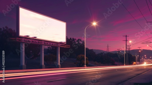 Empty Highway at Sunset with Billboard